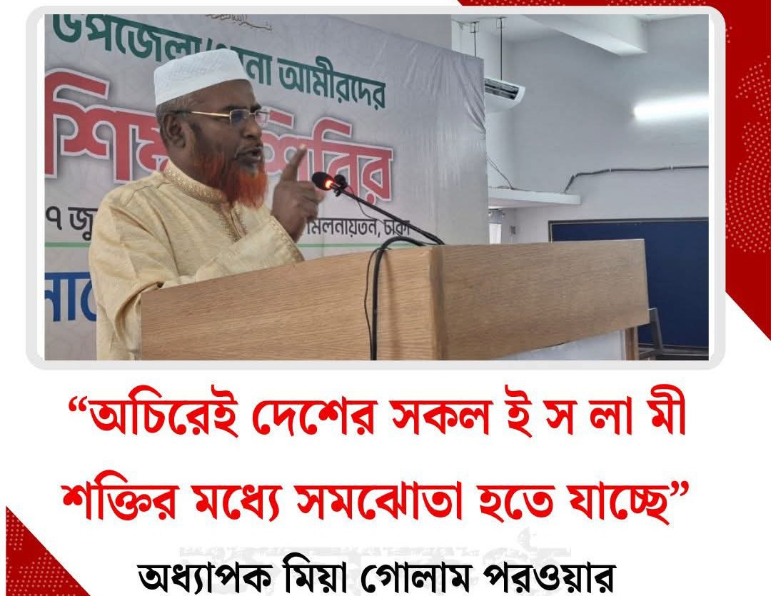 ২৬ ও ২৭ জুন বৃহস্পতি ও জুমাবার দুই দিনব্যাপী মগবাজার আল-ফালাহ মিলনায়তনে বাংলাদেশ জামায়াতে ইসলামী আয়োজিত উপজেলা/থানা আমিরদের শিক্ষাশিবিরের দ্বিতীয় দিনের বক্তব্যে সংগঠনের সেক্রেটারি জেনারেল সাবেক এমপি অধ্যাপক মিয়া গোলাম পরওয়ার এই সব কথা বলেন।